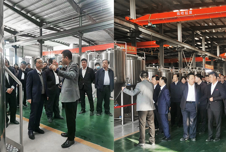 10月28日 省級領(lǐng)導(dǎo)蒞臨山東匯冠機(jī)械設(shè)備有限公司考察指導(dǎo)。在此期間,各級領(lǐng)導(dǎo)參觀了啤酒設(shè)備生產(chǎn)車間、灌裝設(shè)備生產(chǎn)車間,以及啤酒設(shè)備、灌裝設(shè)備展示車間。
