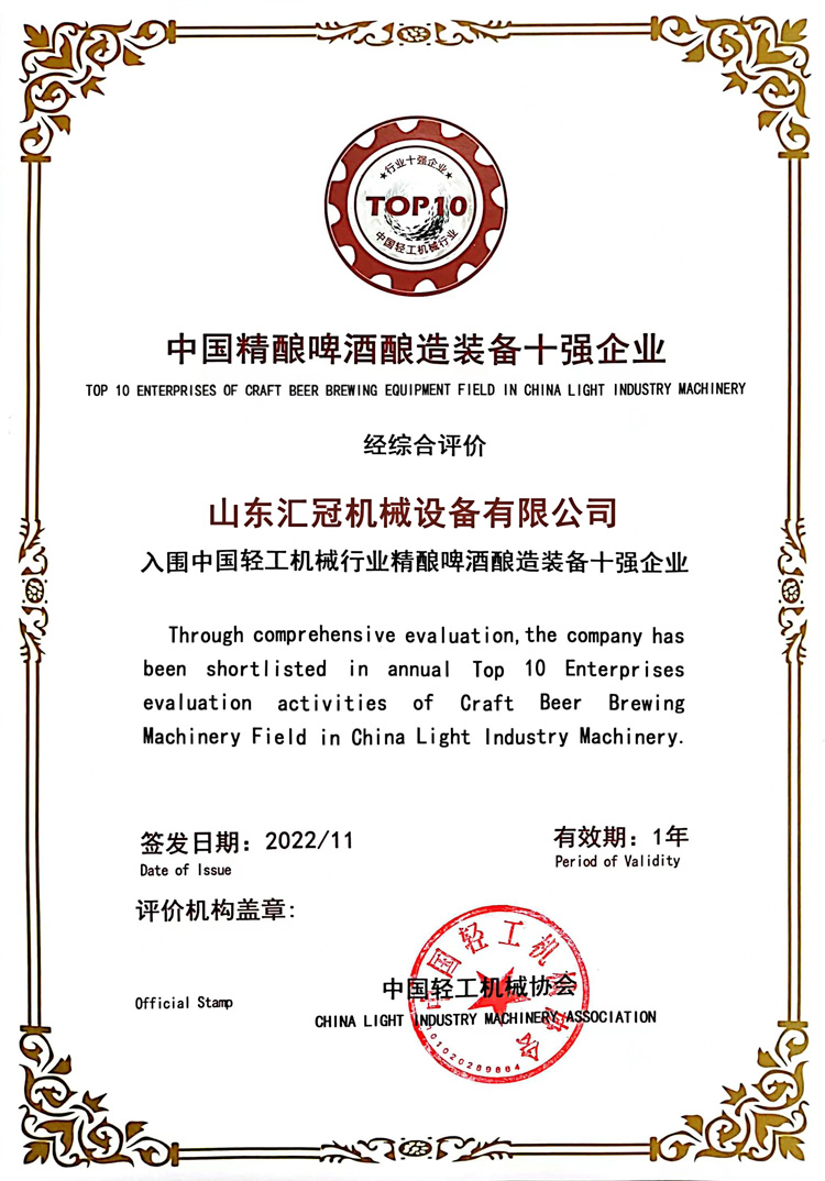 近日,我國輕工業(yè)聯(lián)合會(huì)發(fā)布了2022年度中輕工業(yè)百強(qiáng)企業(yè),另外一起發(fā)布的還有我國科技百強(qiáng)榜、我國輕工業(yè)食品50強(qiáng)企業(yè)等,都是來自各個(gè)輕工業(yè)范疇的優(yōu)秀品牌。其間,山東赫爾曼上榜2022年度“中國輕工機(jī)械行業(yè)精釀啤酒釀造裝備十強(qiáng)企業(yè)”,在此,我司已經(jīng)連續(xù)兩年上榜精釀啤酒釀造裝備十強(qiáng)企業(yè)。